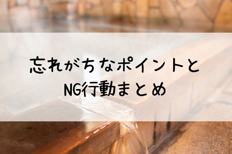 | タオルを湯の中に入れる | 湯がにごったり、他の人が気になりやすい |